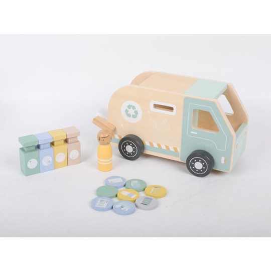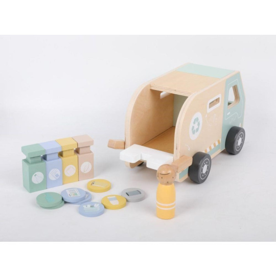 Popelárske auto s príslušenstvom je montessori hračka, ktorá deťom umožní hrať sa aj vzdelávať. S realistickou drevenou hračkou sa deti rýchlo vcítia do obľúbenej detskej role - popelára, užijú si veľa zábavy a ešte sa zoznámia s problematikou triedenia odpadu. Drevené popelárske auto zdokonalí detské zručnosti, naučí deti poznať farby a triediť odpad.