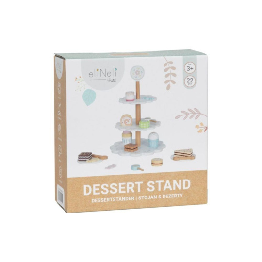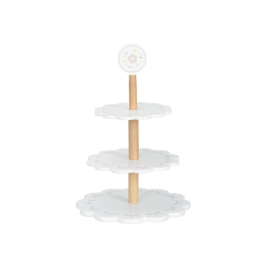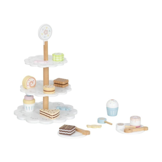 Drevený poschodový stojan s lahodne vyzerajúcimi drevenými zákuskami a cukrovinkami je ako stvorený na oslavy a čajové posedenia usporiadané pre rodičov, kamarátov aj obľúbené plyšové hračky. Drevený stojan s bohatým príslušenstvom je skvelým doplnkom do detskej kuchynky aj obchodu. Deti si môžu zahrať na cukrárov aj predavačov, rozvíjať svoju fantáziu a zdokonaľovať zručnosti.
