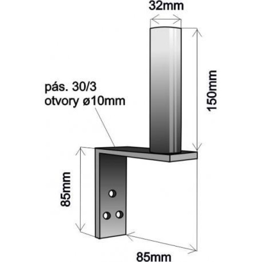 Držák antény na zeď mini, galvanický zinek, délka 8,5cm, výška 15cm