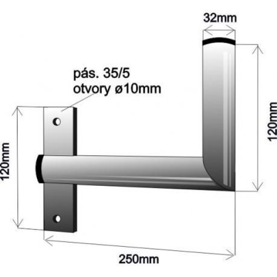 Držák antény na zeď u okna s pásem, levé uchycení, galvanický zinek, délka 25cm, průměr 3,2cm
