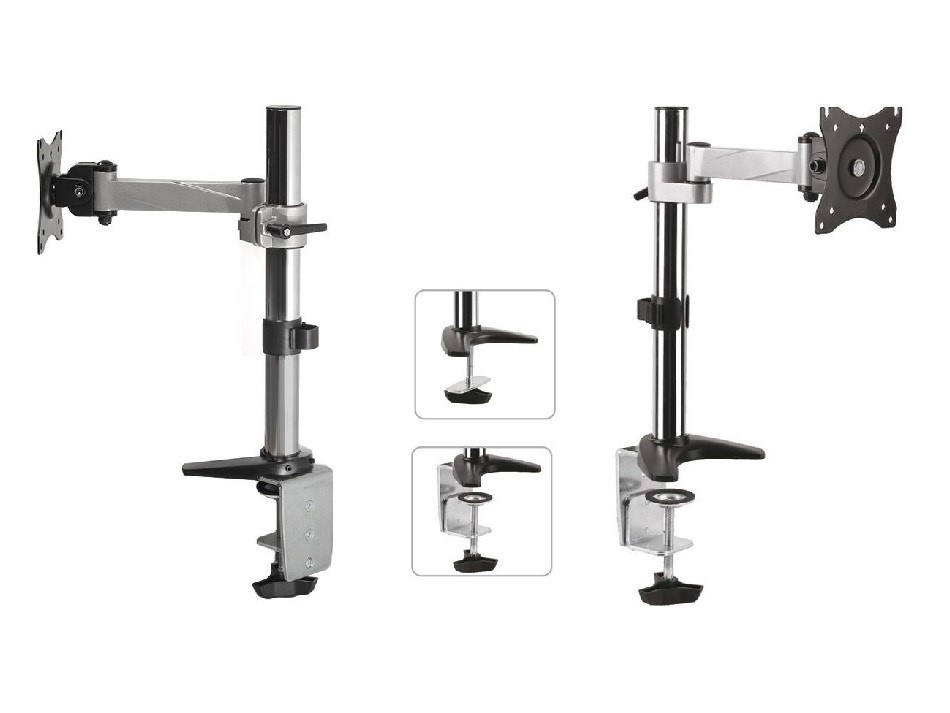 Držiak monitora na stôl Fiber Mounts M7C17 Stolný držiak na monitor 13"-32", otočný +/- 180°, sklopný +/- 35°, výškové nastavenie 100-380mm, funkcia pivot +/- 360°, vzdialenosť od nosníka 0-204mm, inštalačný materiál, 2 úchyty, VESA štandard 75x75 a 100x100, nosnosť 8kg Veľmi pekný, kvalitný a cenovo dostupný stolný držiak na zavesenie všetkých typov a značiek monitorov s uhlopriečkou 13" až 32". Plná nastaviteľnosť polohy obrazovky - otáčanie do strán +/- 180°, naklápanie +/- 35°, výšková regulácia 100-380mm, funkcia pivot = horizontálne alebo vertikálne otočenie obrazovky +/- 360°, vzdialenosť od stolového uchytenia 0-204mm. Stolný držiak podporuje VESA štandardy 75x75 a 100x100, odporúčané maximálne zaťaženie je 8kg. Súčasťou balenia je montážny materiál a 2 typy uchytenia na stolové dosky o sile 10-85mm - na kraj stola alebo skrz stolovú dosku kamkoľvek do priestoru. Držiak je vynikajúcej kvality a pekného dizajnu. Záruka 5 rokov. Stolný držiak monitora do kancelárie alebo pracovne Fiber Mounts M7C17 Technické údaje: nosnosť 8kg podpora VESA štandardov 75x75 a 100x100 odporúčame na monitory s uhlopriečkou 13" až 32" otáčanie do strán +/-180° naklápanie +/- 35° nastaviteľná výška 100-380mm horizontálne alebo vertikálne otočenie obrazovky = funkcia pivot +/- 360° vzdialenosť monitora od nosníka 0-204mm 2 typy stolových uchytov (na okraj a do priestoru) na stolové dosky o sile 10-85mm priemer nosníka 35mm, výška nosníka od stolovej dosky 400mm vynikajúca kvalita, profesionálne spracovanie ľahké nastavenie pozície obrazovky monitora materiál hliník + oceľ farba strieborná + chróm záruka 5 rokov Kancelársky držiak na monitor v profesionálnej kvalite a peknom prevedení Fiber Mounts M7C17 Ideálny stolný držiak do domácností, kancelárií, škôl a podnikov. Vďaka veľmi peknému dizajnu, vynikajúcej kvalite, ľahkej nastaviteľnosti a dostupnej cene patrí tento držiak Fiber Mounts M7C17 medzi veľmi obľúbené.