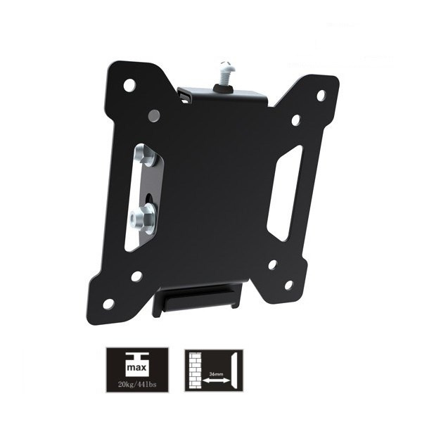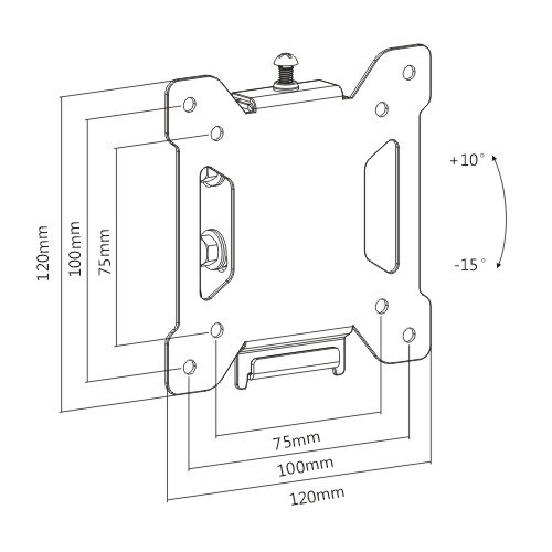 Nástenný držiak na monitory a menšie televízie 13-30", ktorý umožní nastavenie náklonu obrazovky +10°až -15°. Zavešenie monitoru alebo TV je veľmi jednoduché a rýchle, rovnako tak aj samotná inštalácia držiaka na stenu. Držiak podporuje VESA štandardy 75x75 a 100x100, nosnosť 20kg. Farebné prevedenie čierne, záruka 5 rokov.