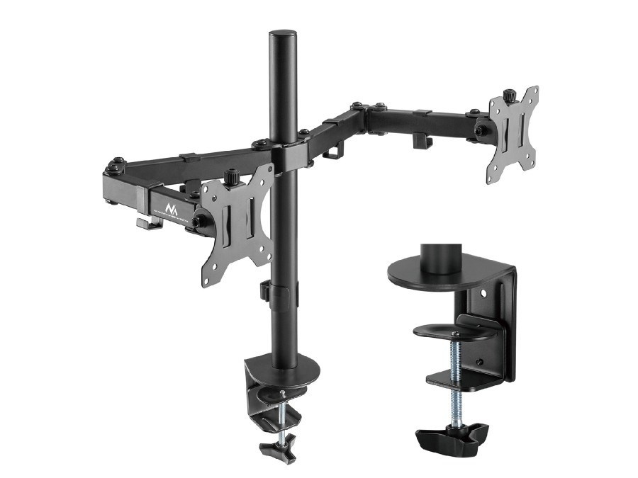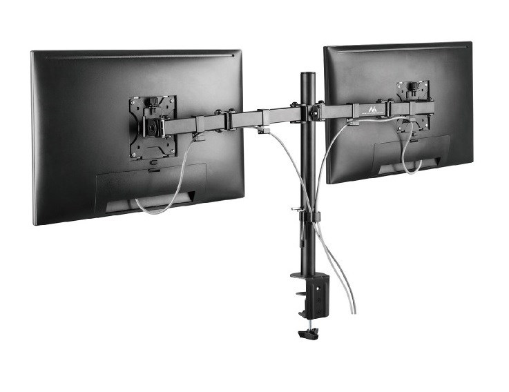 Držiak na 2 monitory Fiber Mounts M8C84 Držiak s uchytením na okraj stola na 2 monitory 15-30", nastaviteľná pozícia monitorov, kvalitná konštrukcia, VESA štandardy 75x75 a 100x100, nosnosť 16kg Držiak na zavešenie 2 monitorov a uchytenie na okraj stola. Jednoduchá inštalácia a nastavovanie monitorov do požadovaných pozícií. Držiak podporuje VESA štandardy 75x75 a 100x100 a zaviesť môžete monitory s celkovou hmotnosťou až 16kg. Držiak má kvalitnú konštrukciu, zavešenie monitorov je úplne spoľahlivé a bezpečné. Dodávame vrátane inštalačného materiálu. Záruka 5 rokov. Stolný držiak na 2 monitory Fiber Mounts M8C84 Technické údaje: nosnosť 16kg (2 x 8kg) na monitory s uhlopriečkou 15-30" podpora VESA štandardov 75x75 a 100x100 dĺžka stolovej tyče 390mm nastaviteľná výška ramien otáčanie do strán +/- 180° nasklopenie +/- 45° maximálna dĺžka ramien 397mm uchytenie na okraj stola, hrúbka stolovej dosky 10-88mm robustná kovová konštrukcia jednoduchá inštalácia, pevné a bezpečné zavešenie monitorov úchytky na káble inštalačný materiál farebné prevedenie čierne záruka 5 rokov Držiak na 2 monitory s uchytením na stôl Fiber Mounts M8C84 Držiak M8C84 podporuje VESA štandardy: VESA 75x75 VESA 100x100 Držiak je vhodný na monitory a displeje s uhlopriečkou 15-30", uchytenie držiaka je možné na stolové dosky hrúbky 10-88mm. Maximálna možné celkové zaťaženie je 16kg, 2 monitory po 8kg.