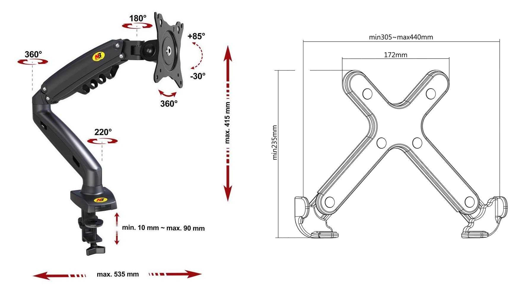 Stolný držiak na notebook laptop Fiber Mounts 836F80 Kvalitný stolný držiak na notebook alebo laptop 11-17,1", výškové polohovanie 165-415mm, otočný +/-180°, náklon notebooku 0° až -90°, vzdialenosť od uchytenia 0-535mm, vedenie káblov, nosnosť 9kg Unikátny systém na uloženie notebooku a jeho ľahkú a rýchlu polohovateľnosť. Držiak Vám umožní výškové polohovanie notebooku, otáčanie do strán, meniť miesto na stole kedykoľvek, ľahko, rýchlo a pohodlne. Držiak je veľmi priateľský k nastaviteľnosti. Vhodný je na uloženie akéhokoľvek notebooku s hmotnosťou až 9kg. Na držiaku sú kryty pre možnosť skrytého vedenia káblov. Možnosť uloženia notebooku alebo laptopu uvítajú každý, kto s ním denne pracuje - nastavenie polohy obrazovky notebooku do úrovne očí (účinné proti bolesti chrbta, chrbtice a hlavy). Možnosť kombinovať aj s držiakom monitora F80 a pri používaní druhého monitora zosúladiť výšku obrazovky notebooku s monitorom. Stolný držiak na notebook laptop do kancelárie, pracovňe alebo detskej izby Fiber Mounts 836F80 Technické údaje: max. zaťaženie 9kg uchytenie akéhokoľvek notebooku alebo laptopu veľkosti 11" až 17,1" šírka notebooku musí byť v rozmedzí 280mm až 440mm výškové polohovanie 250mm (165-415mm) nastavenie vzdialenosti od stolového uchytenia až 535mm otáčanie do strán bez obmedzenia +/- 180° nastavenie náklonu notebooku 0° (vodorovne) až -90° (zvisle) ľahká korekcia roviny rýchla a ľahká zmena polohy notebooku na stole uchytenie držiaku na okraj stolovej dosky alebo skrz stolovú dosku skrutkou vynikajúca kvalita systém pre skryté vedenie káblov 2 typy uchytenia na stolovú dosku (na okraj alebo do priestoru) farba čierna záručná doba 3 roky