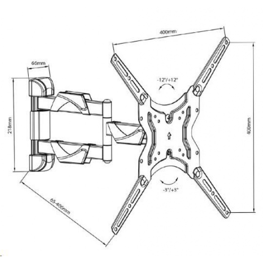 vynikajúci držiak na zavešenie plochých televízorov s uhlopriečkou 13-52 palcov, otočný a sklopný, dĺžkovo nastaviteľný Lacný, no vynikajúci držiak na zavešenie všetkých typov a značiek plochých televízorov na stenu. Držiak umožňuje otáčanie do strán, náklon dole aj hore, korekciu roviny, nastavovanie vzdialenosti obrazovky od steny. Oceľová konštrukcia zabezpečuje spoľahlivé a bezpečné zavešenie TV, nechýba ani zajištenie proti vysadeniu. Technické údaje: nosnosť 30kg podporuje VESA štandardy 75x75 až 400x400 vhodný na zavešenie všetkých typov a značiek plochých televízorov odporúčaná uhlopriečka televízora 13 až 52 palcov otáčanie do strán +/- 90° nástoj dole aj hore +/- 12° nastaviteľná vzdialenosť od steny 65 až 406mm korekcia roviny +/- 3° dizajnové kryty na fixovanie káblov vynikajúca kvalita oceľová konštrukcia zabezpečenie proti vysadeniu TV ľahká a rýchla montáž farebné prevedenie čierne záruka 3 roky Držiak TV Fiber Mounts D7C43 podporuje VESA štandardy: VESA 75x75 VESA 100x100 VESA 200x100 VESA 200x200 VESA 300x300 VESA 400x200 VESA 400x300 VESA 400x400
