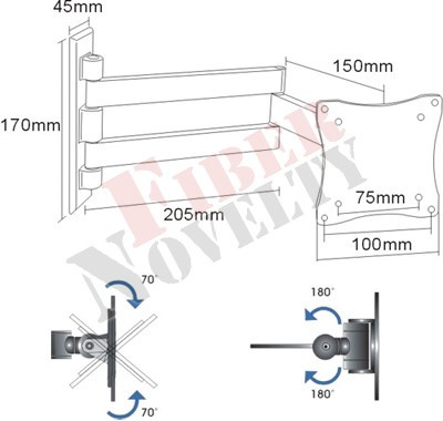Držiak na televízory a monitory Fiber Novelty FN101 Kvalitný otočný držiak na monitor alebo menšiu televíziu do 32", možnosť veľkého náklonu, nastaviteľná vzdialenosť od steny Kvalitný televízny držiak na monitory a menšie televízory. Pri držiaku je veľmi jednoduchá montáž, pretože je dodávaný už zložený a nastavenie obrazovky do požadovanej polohy je otázkou sekúnd. Tento držiak na monitory má výborné riešenie sklonu, nevznikajú žiadne vôle a náklon je možný nahor aj nadol v úžasných až 70 stupňov. Držiak FN101 unesie záťaž až 15 kg a odporúčame ho pre obrazovky s uhlopriečkou do 32". Nástenná konzola na zavešenie lcd led obrazoviek, otáčanie do strán, náklon, zmena vzdialenosti od steny - Fiber Novelty FN101 Technické údaje: max. zaťaženie 15kg podporuje VESA štandard 75x75 a 100x100 odporúčame na monitory alebo menšie televízory s uhlopriečkou 15" až 32" možnosť náklonu až +/- 70° otočný do strán +/- 90° minimálna vzdialenosť obrazovky od steny 50mm maximálna vzdialenosť obrazovky od steny 370mm kvalitná konštrukcia z hliníka jednoduché nastavenie obrazovky do požadovanej polohy montážny materiál súčasťou balenia záruka 5 rokov Držiak Fiber Novelty FN101 podporuje VESA štandardy: VESA 75x75 VESA 100x100 Držiaky Fiber Novelty FN101 sú vhodné na všetky typy televízorov a monitorov, ktoré podporujú VESA štandard 75x75 alebo 100x100 a ich hmotnosť je maximálne 15kg. Na veľkosti uhlopriečky nezáleží, je možné zaviesť ako väčšie, tak aj menšie obrazovky.