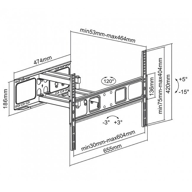 Dvouramenný výsuvný držiak TV Fiber Mounts M7C1 Vysoko kvalitný dvojramenný držiak na televízie 37-70", otáčateľný +/-60°, sklopný +5°/-15°, vzdialenosť TV 53-464mm, korekcia roviny +/-3°, montážny materiál, VESA 75x75 až 600x400, nosnosť 40kg Vysoko kvalitný dvojramenný televízny držiak, na ktorý bezpečne poveste televízory s uhlopriečkou 37" až 70". Držiak umožňuje otáčanie do strán, náklon nahor aj nadol, zmenu vzdialenosti od steny a korekciu roviny obrazovky. Dodávame vrátane montážneho materiálu. Farebné prevedenie čierne. Dvouramenný výsuvný držiak na televízie Fiber Mounts M7C1Fiber Mounts M7C1 je kvalitný dvojramenný držiak pre spoľahlivé a bezpečné povolenie televízie na stenu Technické údaje: maximálne zaťaženie 40kg podporuje VESA štandard 75x75 až 600x400 odporúčame na televízory s uhlopriečkou 37" až 70" otáčanie do strán +60° až -60° náklon +5° až -15° nastaviteľná vzdialenosť od steny minimálna vzdialenosť 53mm maximálna vzdialenosť 464mm korekcia roviny +3° až -3° bezpečné povolenie obrazovky, zabezpečenie proti vysadeniu kvalitná konštrukcia ľahká inštalácia a nastaviteľnosť farba čierna záruka 3 roky Výsuvný, otočný a sklopný držiak na zavesenie LCD, LED, OLED a QLED televízorov na stenu - Fiber Mounts M7C1 Držiak TV Fiber Mounts M7C1 podporuje VESA štandardy: VESA 75x75 VESA 100x100 VESA 200x100 VESA 200x200 VESA 300x200 VESA 300x300 VESA 400x200 VESA 400x300 VESA 400x400 VESA 600x400 Na držiak Fiber Mounts M7C1 je možné povesti všetky typy a značky televízorov, ktoré podporujú niektorý z vyššie uvedených VESA štandardov a ich hmotnosť je maximálne 40kg. Uhlopriečka televízora nie je podstatná.