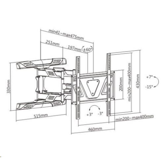 Špičkový nástenný držiak s polohovaním TV 32-80", otočný, sklápací, výsuvný Nástenný držiak na televíziu, ktorý vyniká skvelou nastaviteľnosťou, výbornou konštrukciou a krásnym dizajnom. Vhodný je na všetky typy a značky televízorov, ktorých hmotnosť nie je vyššia ako 45kg a ktoré podporujú VESA štandardy od 200x200 do 400x400. Unikátna konštrukcia držiaka umožňuje zasunutie televízora k stene na vzdialenosť len 41mm a maximálne vysunutie až na vzdialenosť 475mm. Otáčanie je možné na obe strany minimálne o 60°, naklonenie je spoľahlivých 15° dolu alebo 7° hore. Držiak podporuje korekciu roviny obrazovky, konštrukcia je vybavená krytmi pre vedenie káblov. Držiak Fiber Mounts Super-2 odporúčame aj náročným používateľom, vďaka svojej kvalite, dizajnu, nastaviteľnosti, kvalitnému spracovaniu a dostupnej cene je dostupný takmer každému. Fiber Mounts Super-2 je špičkový držiak na televízie 37-80" za skvelú cenu, vhodný nielen pre náročných používateľov Technické údaje: nosnosť 45kg podpora VESA štandardu 200x200 až 400x400 vhodný na televízie s uhlopriečkou 32" až 80" výsuvný, nastavenie vzdialenosti od steny 41mm až 475mm otočný na obe strany, minimálne +/- 60° sklápací, smerom nadol až o 15°, hore až o 7° korekcia roviny obrazovky +/- 3° ultra tenká, hrubá konštrukcia výborná bezpečnosť a stabilita bez preťažovania ramien aj pri maximálnom zaťažení a maximálnom vysunutí krásny dizajn kryty pre vedenie káblov farebné prevedenie čierne záruka 5 rokov Nástenný výsuvný ultraslim držiak na TV Fiber Mounts Super-2 podporuje VESA štandardy: VESA 200x200 VESA 300x200 a 200x300 VESA 300x300 VESA 400x200 a 200x400 VESA 400x300 a 300x400 VESA 400x400