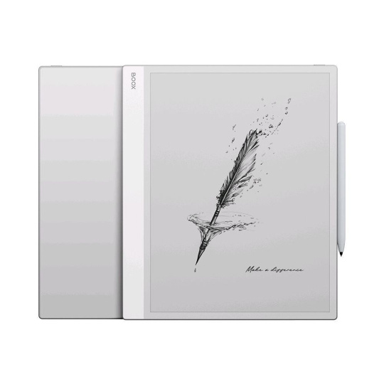 ONYX BOOX Note Max je vysoko výkonná 13,3” E čítačka s rozsiahlymi možnosťami pre prácu s dokumentmi. Jeho obrazovka E Ink Carta Plus (Carta1300) má maximálne rozlíšenie 300 ppi a vyšší kontrast. Kapacitný snímač umožňuje prácu v menu, priblíženie stránok intuitívnym sevretím. Jeho ďalšia indukčná dotyková vrstva umožňuje kresliť a zaznamenávať ručne písané poznámky stylusom dodávaným so zariadením. Model má vysoko výkonný 8jádrový procesor s taktom 2,8 GHz. Nový grafický procesor s technológiou BOOX Super Refresh poskytuje vysokorýchlostné obnovovanie obrazovky a plynulý pohyb objektov na obrazovke. Note Max je nielen ideálny na čítanie, ale je tiež perfektným nástrojom na prácu s rôznymi typmi dokumentov. Operačný systém Android 13 vám umožňuje inštalovať a používať aplikácie tretích strán. Zabudovaný Wi-Fi modul umožňuje sťahovať e-knihy z internetu a využívať ďalšie sieťové služby a podpora Bluetooth 5.1 umožňuje pripojenie externých zariadení. 128 GB vnútorná pamäť umožňuje ukladať do zariadenia prakticky neobmedzene akékoľvek potrebné e-knihy a dokumenty. Jeho batéria s kapacitou 3700 mAh zabezpečuje dlhodobú autonómnu prevádzku. Tento model nemá zabudované podsvietenie obrazovky a je navrhnutý na prácu s externým osvetlením. Telo Note MAX je vyrobené z ľahkej a odolnej zliatiny hliníka a horčík, displej je krytý dodatočným ochranným sklom.