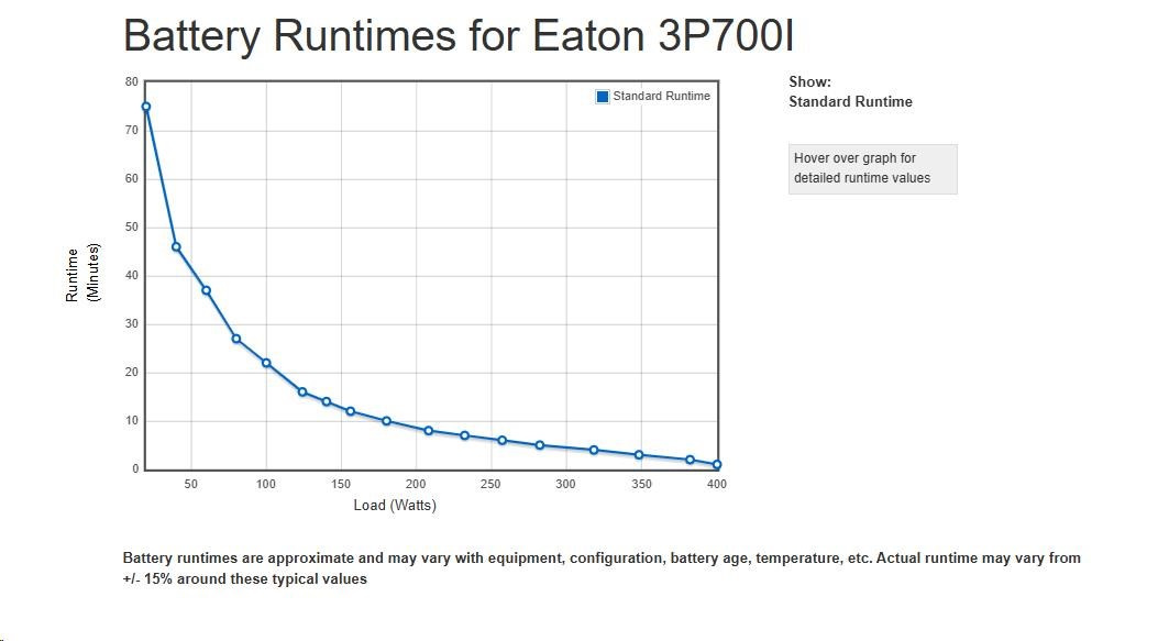 | Riadenie batérie | Vymeniteľné batérie, automatický test batérie, ochrana pred hlbokým vybitím, možnosť studeného štartu Popis produktu bol preložený pomocou umelej inteligencie a môže obsahovať nepresnosti. .ParametrePridať do porovnania Topologie Off-Line Provedení Tower Eaton 3P Ellipse UPS IEC, 700 VA, 420 W, Vstup: C14, Výstupy: (3) C13, (1) Pouze přepěťová ochrana C13, TowerNaposledy navštívené |