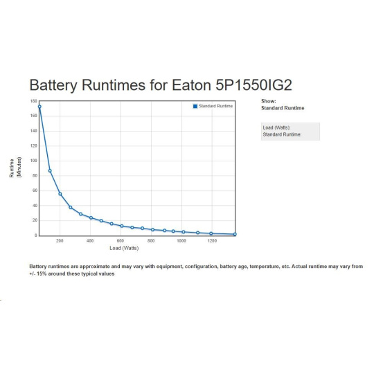 - UPS 5P môže merať energetickú spotrebu v kWh, ktorú je možné sledovať buď na LCD alebo pomocou softvéru Eaton Intelligent Power® Software Suite.
