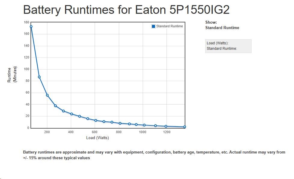- UPS 5P môže merať energetickú spotrebu v kWh, ktorú je možné sledovať buď na LCD alebo pomocou softvéru Eaton Intelligent Power® Software Suite.