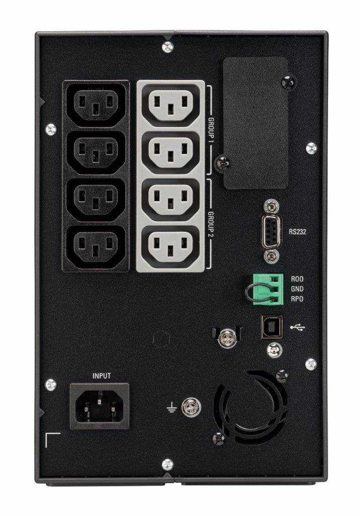 Komunikačné porty: 1 USB port + 1 RS232 sériový port (nemôžu byť použité súčasne), mini svorkovnica pre vzdialené zapnutie a vypnutie a pre vzdialené odstavenie (RPO)