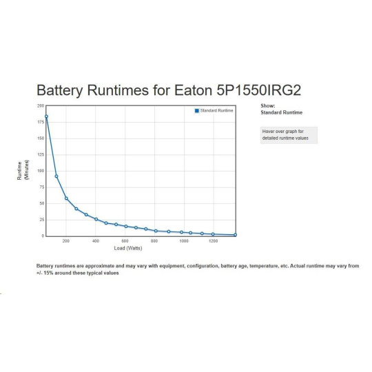 | Špeciálne funkcie | Automatická regulácia napätia (AVR) Ochrana s vysokou hustotou pre siete: len 1U Energetická účinnosť, zníženie nákladov na energiu a chladenie Poskytuje čistý sinusový výstup 1 slot pre voliteľnú komunikačnú kartu (karta pre správu siete, reléová karta alebo sieťová a priemyselná karta) Kompatibilné s virtuálnymi prostrediami (VMware, Hyper-V, Citrix Xen, Redhat) Plne sa integruje s softvérom Eaton Intelligent Power Manager 1 USB port + 1 sériový port Technológia Advanced Battery Management (ABM) pre predĺženie životnosti batérie Grafický LCD displej novej generácie Batérie vymeniteľné za prevádzky Vzdialený reštart a optimalizácia chodu vďaka 2 riadiacim skupinám zásuviek |