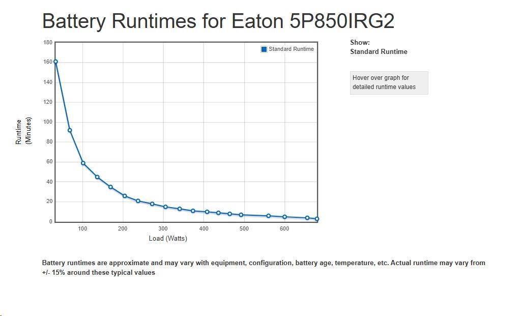 - UPS 5P môže merať energetickú spotrebu v kWh, ktorú je možné sledovať buď na LCD alebo pomocou softvéru Eaton Intelligent Power® Software Suite.