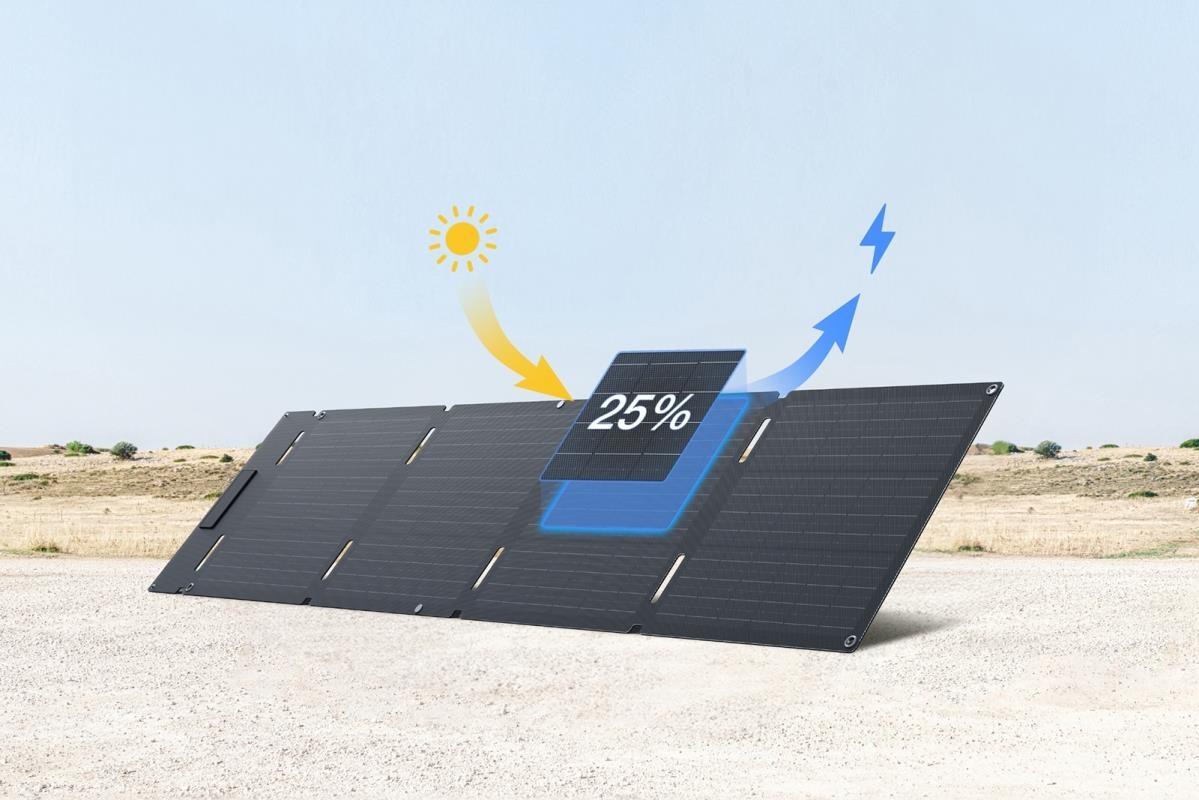 EcoFlow 60W prenosný panel (typ-C) využíva pokročilú technológiu solárnych článkov s vysokou účinnosťou, ktorá dosahuje 25 %. Je ľahko prenosný a vďaka vysokej odolnosti a zároveň nízkym nárokom na údržbu predstavuje ideálny zdroj nabíjania pri aktivitách mimo dosah elektrickej siete.