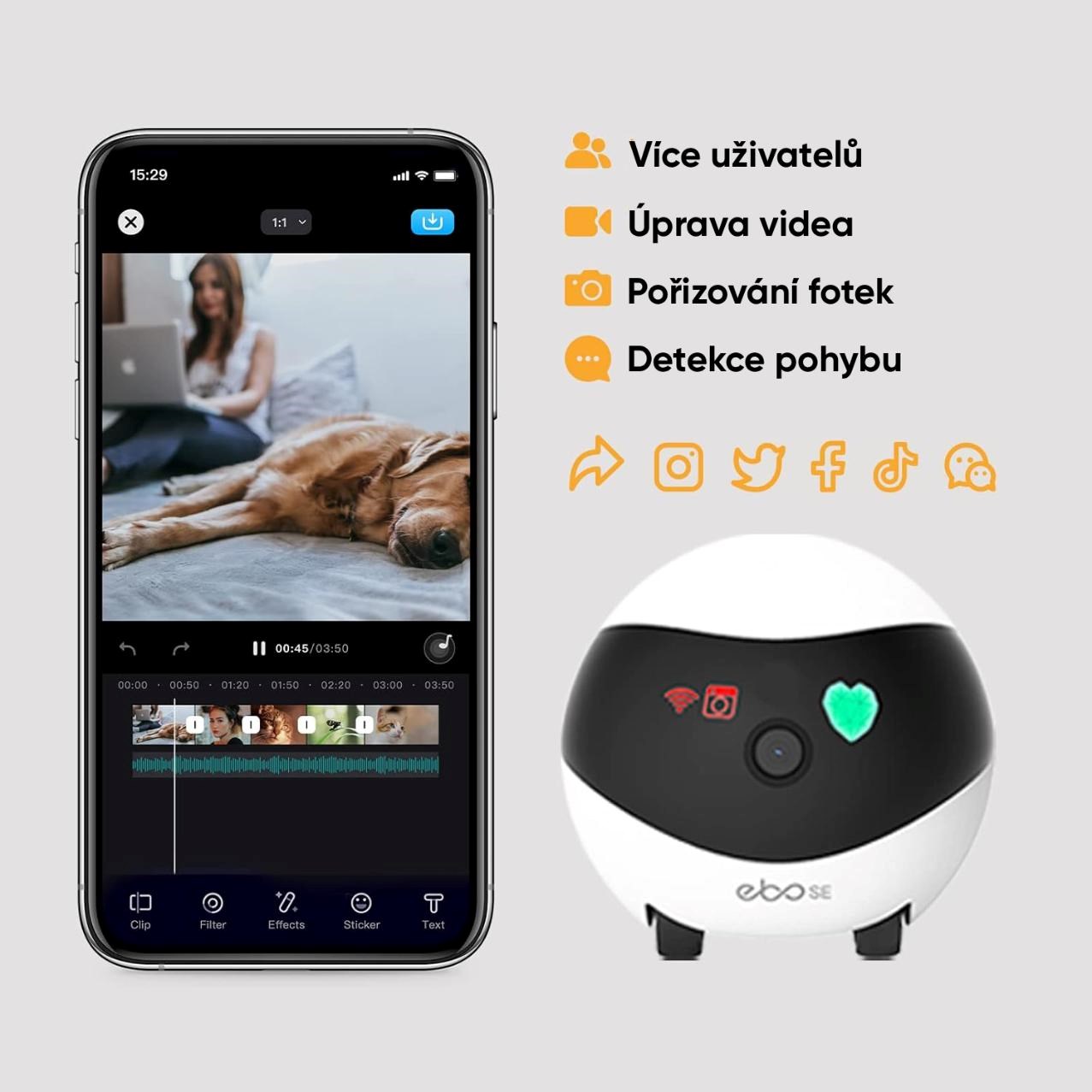 • Zábava pre domácich miláčikov aj deti – EBO SE reaguje na pohyb, s ním môžete hrať hry alebo sa môže stať „spoločníkom na diaľku“.