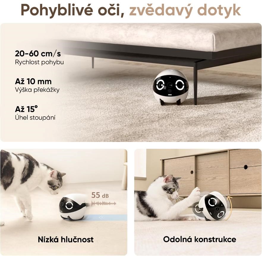 ROLA Mini nie je len kamera, ale interaktívny kamarát, ktorý pomáha zvieratám prekonať samotu a nudu, keď ste preč. Pohyb, zvuk i možnosť reagovať na váš hlas stimulujú prirodzenú zvedavosť a aktivitu zvieraťa. Robot dokáže miláčika baviť, upokojiť aj zaujať, čím prispieva k jeho duševnej pohode a lepšiemu správaniu počas vašej neprítomnosti.