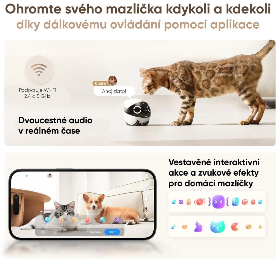 • Všestranné využitie – skvelý na zábavu domácich miláčikov, komunikáciu s deťmi aj ako mobilná domác? kamera.