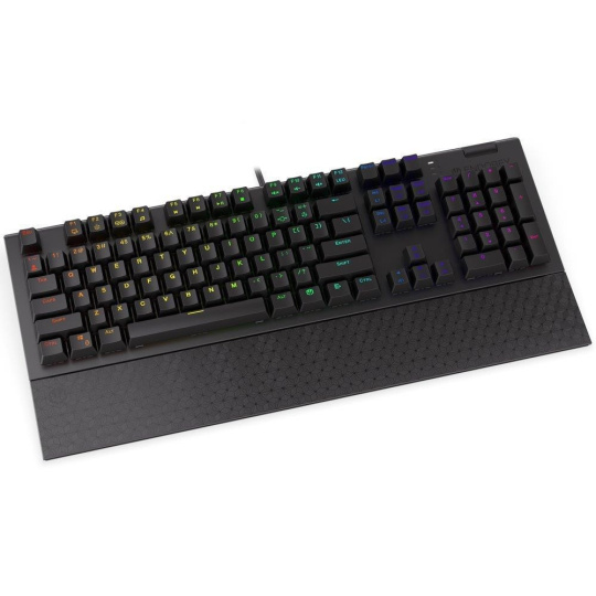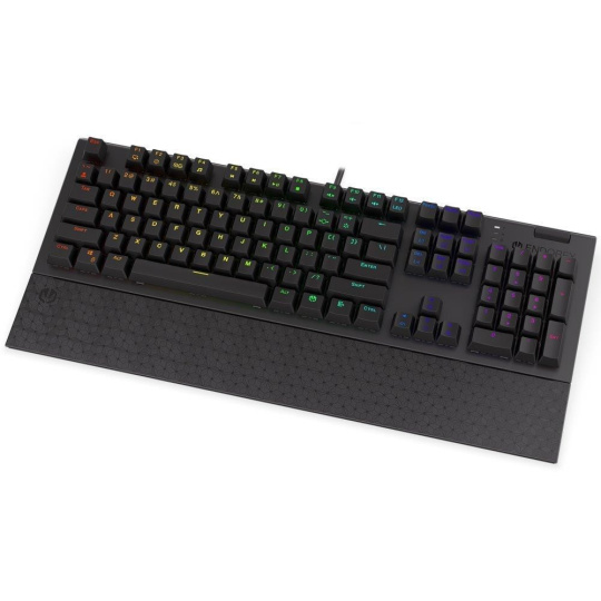Plnohodnotná mechanická klávesnica pre každého vášnivého hráča. Vďaka spínačom Kailh Blue ponúka výbornú odozvu a výdrž pres 50 miliónov stlačení. Konštrukcia z hliníku vykazuje iba tú najvyššiu možnú odolnosť a stabilitu. Špičkové pohodlie zabezpečí odnímatelná opierka dlaní. Klávesy sú RGB podsvietené a ponúkajú možnosť vlastného nastavenia. Navyše sú aj plne programovateľné, vďaka čomu môžete klávesnicu individualizovať presne podľa potrieb hráča a hrané hry. Klávesnica disponuje tiež otočným ovládačom hlasitosti. Samozrejme nechýba ani funkcia Anti-Ghosting a N-Key rollover. Pripojenie je realizované skrze odnímateľný USB kábel.