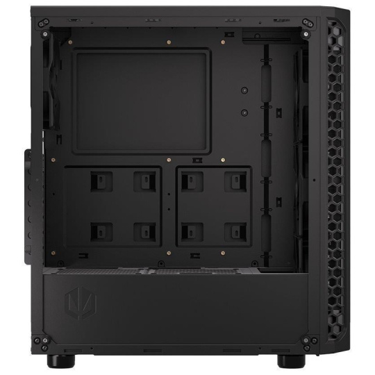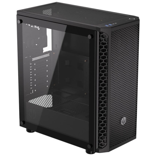 Skriňa formátu Middle Tower s priehľadnou bočnicou z tvrdeného skla ponúka dve 2,5" pozície pre SSD disky a dve 3,5" pozície pre pevné disky. Na hornej časti sa nachádza dva USB 3.0 porty, slúchadlový výstup a audio vstup pre mikrofón. Vybavená je štyrmi 120 mm ventilátormi, ktoré spolu s perforovaným predným panelom zabezpečujú dostatočné prúdenie vzduchu. Dômyselné riešenie umožňuje pohodlné umiestnenie až 360 mm dlhého výmenuňíka vodného chladenia na prednej strane. Vo skrini je dostatok priestoru pre chladicu CPU do výšky až 161 mm a grafickú kartu dĺžky až 350 mm. Dodáva sa bez zdroja. Súčasťou je tiež sada prachových filtrov.