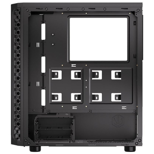 Skriňa formátu Middle Tower ponúka dve 2,5" pozície pre SSD disky a dve 3,5" pozície pre pevné disky. Na vrchu sa nachádzajú dva USB 3.0 porty, slúchadlový výstup a vstup pre mikrofón. Je vybavená jedným 120 mm ventilátorom, ktorý spolu s perforovaným čelom zabezpečuje dostatočný prúd vzduchu. Dômyselné riešenie umožňuje pohodlné umiestnenie až 360 mm dlhého výmenníka vodného chladenia na prednej strane. Vo škrini je dostatok priestoru pre chladič CPU do výšky až 161 mm a grafickú kartu dlhú až 350 mm. Dodáva sa bez zdroja. Súčasťou je aj sada prachových filtrov.