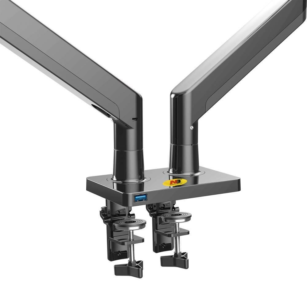 Kancelársky stolný držiak na 2 monitory NB G32 Ergonomický stolný držiak na 2 monitory 17-32", nastaviteľná výška, otáčanie, naklápanie, vysúvanie, PIVOT, vedenie káblov, VESA 75x75 a 100x100, nosnosť 30kg Profesionálny dizajnový stolný držiak na 2 monitory 17-32" najvyššej kvality, ľahko polohovateľný a ergonomický. Výšková poloha monitorov od stolovej dosky 200-530mm, otáčanie do strán +/-360°, naklápanie monitorov +85°/-30°, maximálna vzdialenosť od uchytenia 630mm, PIVOT, USB port, 2 typy stolových držiakov, aretácia otáčania a vysúvania, VESA 75x75 a 100x100, nosnosť 30kg Kancelársky stolný držiak na 2 monitory, plne ergonomický NB G32 Technické údaje: celková nosnosť 30kg plynová pružina s nastavením na hmotnosť každého monitora 2-15kg podpora VESA štandardov 75x75 a 100x100 plynulé nastavenie výšky monitorov od stolovej dosky 200-530mm max. vysunutie od stolového uchytenia 630mm naklápanie monitorov +85° / -30° otáčanie každého ramena do strán +/- 360° funkcia PIVOT (rotácia monitorov +/-360°) systém vedenia káblov aretácia ramien v polohe (červíky) USB port na podstavci 2 typy stolových držiakov (na okraj alebo do priestoru) najvyššia kvalita s dôrazom na detail záruce 3 roky Nezávislé polohovanie monitorov 17-32" na stolnom držiaku NB G32 Kancelársky držiak na 2 monitory podporuje VESA štandardy: VESA 75x75 VESA 100x100 možnosť zakúpenia vrátane VESA nástavca 200x100 (viz. vyššie zvoľte VESA štandard) možnosť zakúpenia vrátane VESA nástavca 200x200 (viz. vyššie zvoľte VESA štandard) 2 typy stolových držiakov: na okraj stola, max. hrúbka stolovej dosky 80mm do priestoru stolovej dosky cez otvor (10-50mm), max. hrúbka stolovej dosky 90mm