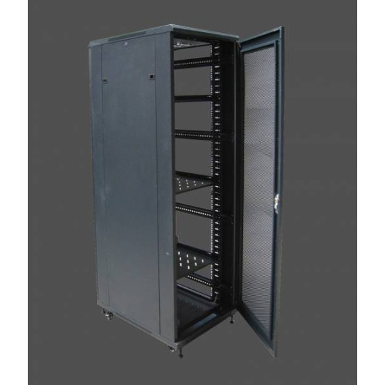 Stojan je vybavený výškovo nastaviteľnými policami (3ks pre 42U), panelom so zásuvkami 230V, ventilačnou jednotkou a sadou upevňovacích prvkov. Uzamykateľné kovové dvere na prednej a zadnej stene. Odnímateľné bočné kryty s možnosťou montáže zámku. Dodávané v rozloženom stave.