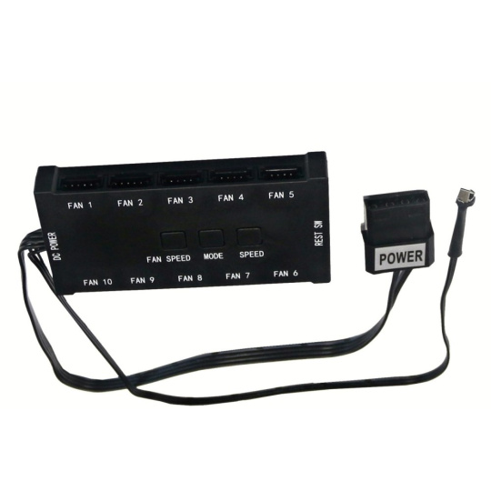 - riadiaca jednotka umožňuje pripojenie až 10ks ventilátorov a ovládanie tlačidlami priamo na jednotke, napájanie jednotky cez konektor "molex" z PC zdroja