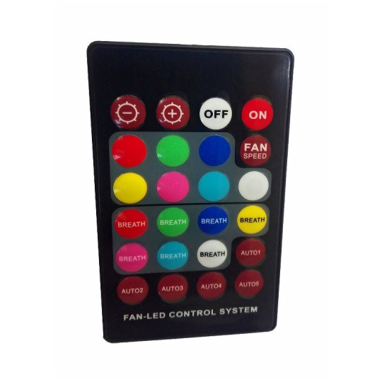 - diaľkové ovládanie (možnosť voľby farby podsvietenia s možnosťou vypnutia, riadenie otáčok ventilátorov s možnosťou vypnutia)