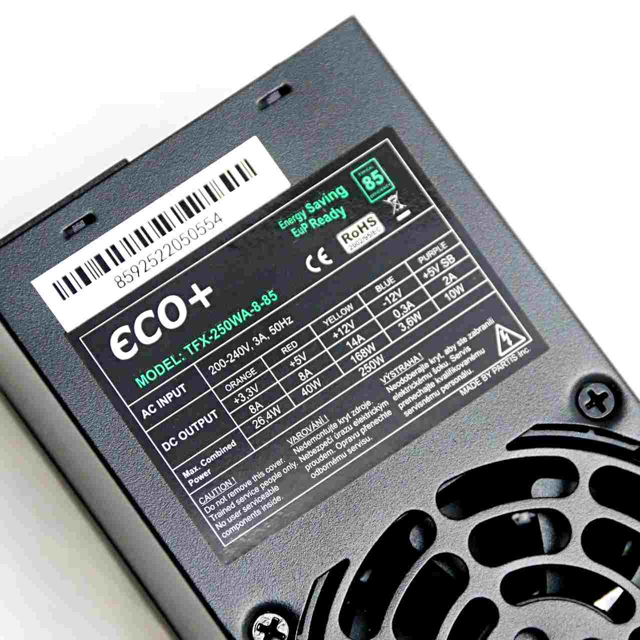 Napájací zdroj EUROCASE TFX 250WA-8-85, 250 W, ploché káble, čierny