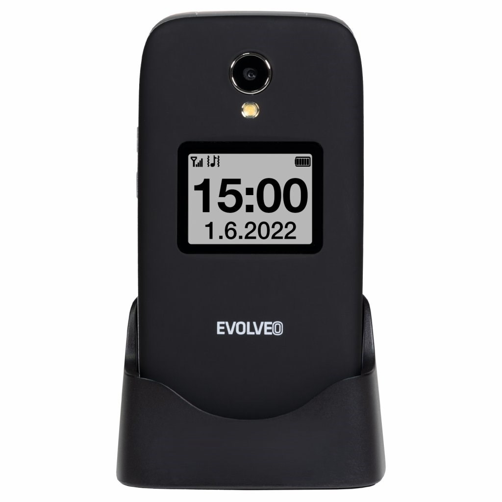 EVOLVEO EasyPhone FS, vyklápěcí mobilní telefon 2.8" pro seniory s nabíjecím stojánkem (černá barva)