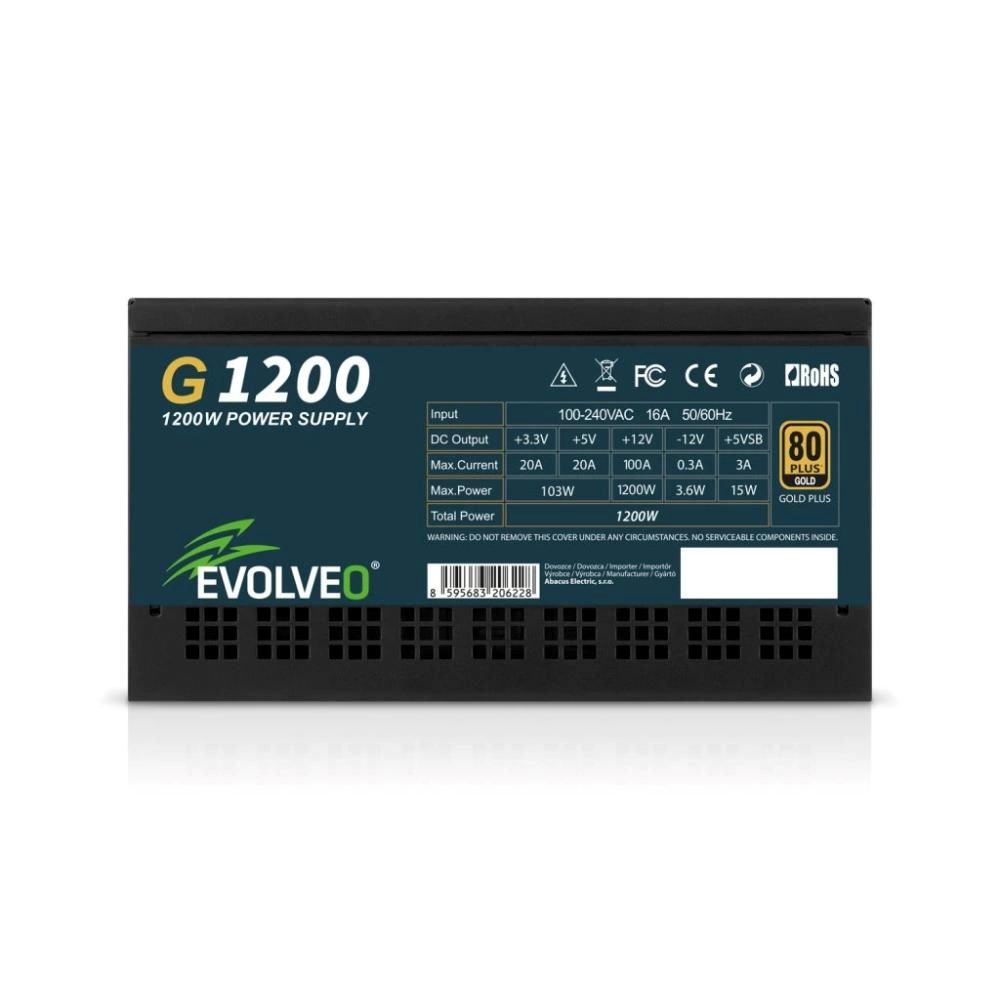 EVOLVEO G1200 zdroj 1200W, 80+ GOLD, ATX 3.1, aPFC, 140 mm ventilátor, záruka 3 roky, černý