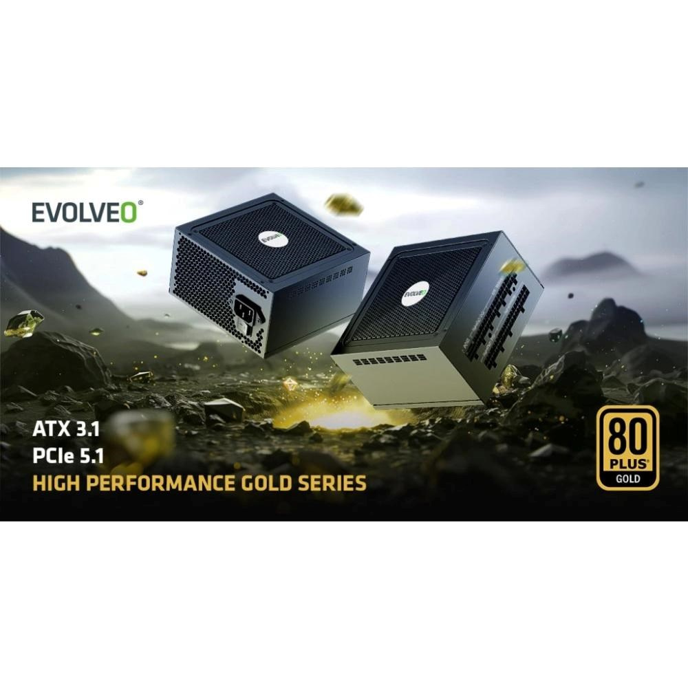 EVOLVEO G850 zdroj 850W, 80+ GOLD, ATX 3.1, aPFC, 140 mm ventilátor