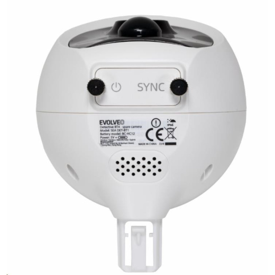 Náhradná kamera určená pre rozšírenie inštalácie EVOLVEO Detective BT4. Kamera je vybavená akumulátorom s kapacitou 5000mAh. Pod krytkou sa nachádza USB-C konektor pre nabíjanie a tlačidlo na zapnutie/vypnutie a párovací režim. Kamera je vybavená nočným IR prísvitom a PIR čidlom na rozpoznanie pohybu. Súčasťou kamery je aj mikrofón a reproduktor pre obojstrannú hlasovú komunikáciu.