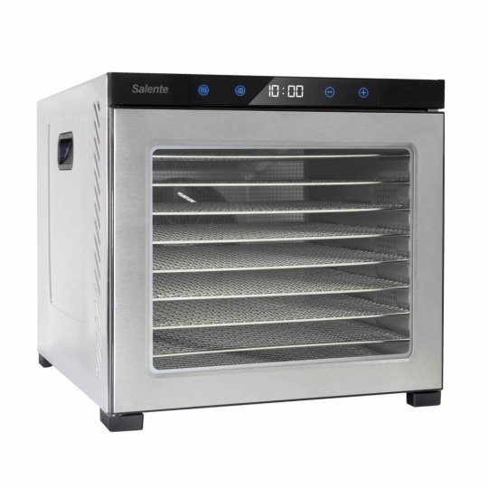 Celonerezová profesionálna sušička Salente QuickDry ponúka rovnomerné sušenie húb, ovocia, zeleniny, byliniek, čaju a ďalších surovín s maximálnym používateľským komfortom vďaka senzorickému dotykovému ovládaciemu panelu s digitálnym displejom a veľmi jednoduchému nastaveniu teploty aj času s možnosťou libovolnej zmeny nastavených hodnôt aj počas sušenia. Teplotu je možné nastaviť v rozsahu 35-75 °C v krokoch po 5 °C, čas je možné nastaviť v rozsahu 30 minút až 24 hodín v krokoch po 30 minútach. Vďaka použitým materiálom má predĺženú životnosť a veľmi ľahko sa udržiava a čistí.