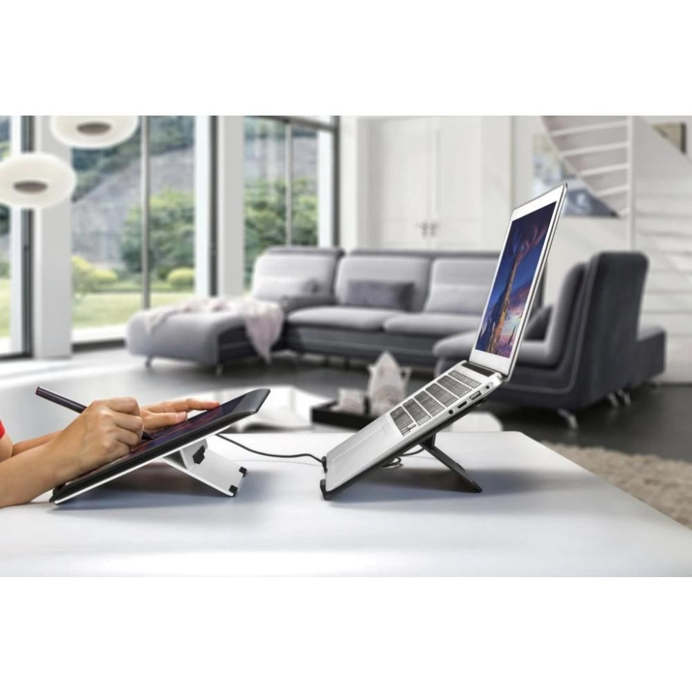 Tento hliníkový podstavec se stane základním stavebním kamenem běžného pracovního notebooku, lehkého ultrabooku i robustnějšího herního stroje. Je totiž navržen jako univerzální pomůcka pro notebooky a tablety až do 16". S nosností 10 kg přitom všechna tato zařízení bez problému unese.