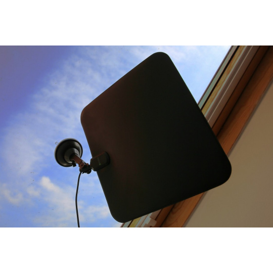 Elegantná izbová anténa na príjem digitálnej aj analógovej TV. Zosilňovač antény je možné napájať dvoma spôsobmi pomocou USB kábla. Napájanie pomocou adaptéra 230V a tiež napájanie z USB konektora. Druhý spôsob ocení používateľ, ktorý chce sledovať TV napríklad na NB pomocou USB tuneru. Anténu je možné prilepiť sadou 3M obojstranných lepiacich pásikov na stenu, nábytok, alebo umiestniť do podstavca. Podstavec je vybavený prísavkou.