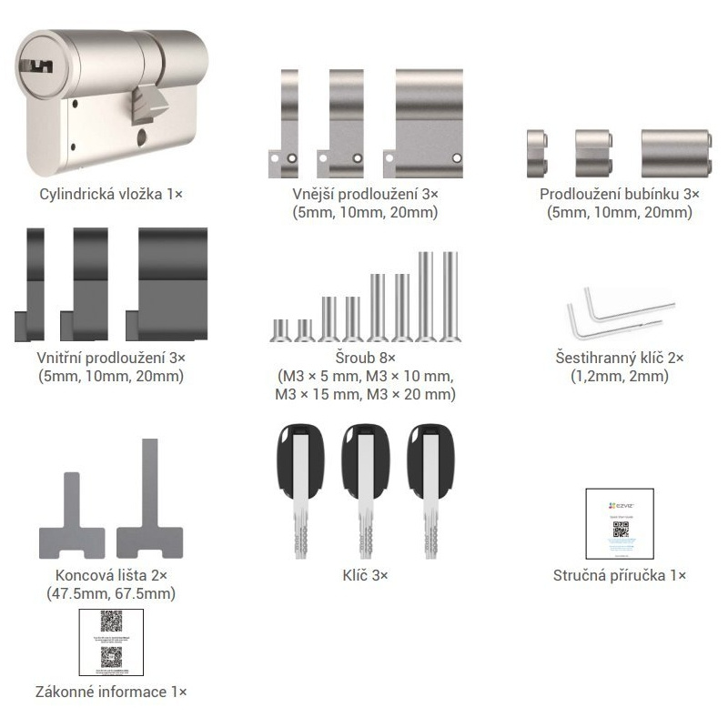Ak vaša stará cylindrická vložka dverí nesplňuje požiadavky na inštaláciu pre konkrétne chytré zámky EZVIZ, môžete ju nahradiť touto nastaviteľnou cylindrickou vložkou EZVIZ.