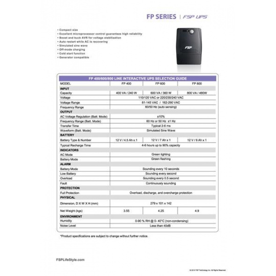 Fortron UPS FSP FP 600, 600 VA, interaktívna linka