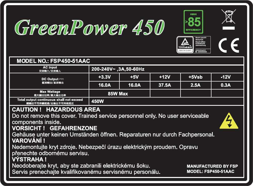 Napájacie zdroje ATX GreenPower 85+, ktoré vyrába renomovaná spoločnosť Fortron FSP Group, sú najlepšou alternatívou za výhodnú cenu pre váš domáci, kancelársky a herný počítač. Vďaka dlhoročným skúsenostiam vo výrobe a znalostiam technológie napájania vám poskytnú najlepšie riešenie pre vašu domácnosť a kanceláriu. Spoľahlivé, účinné a cenovo dostupné napájacie zdroje GreenPower 85+ sú ideálnou voľbou pre váš počítač.