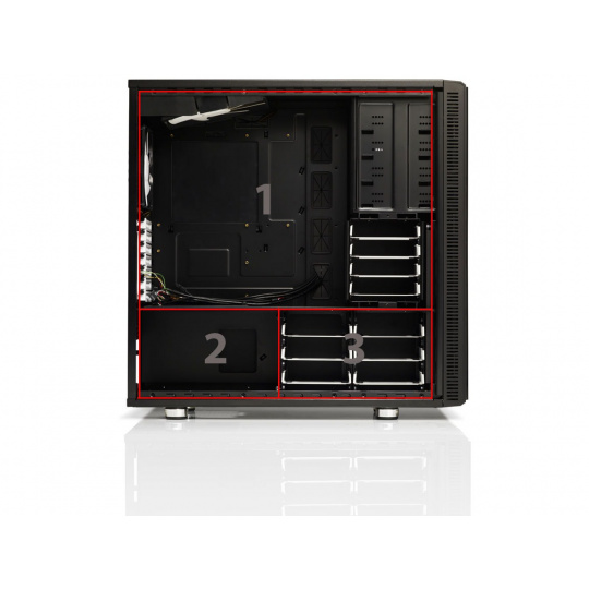 - Vpredu: 1 - hydraulický ložiskový 140 mm Silent Series R2 ventilátor, otáčky 1000 RPM (vrátane), 1 - 120/140 mm ventilátor (nie je súčasťou balenia)