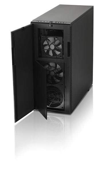 - Vpredu: 1 - hydraulický ložiskový 140 mm Silent Series R2 ventilátor, otáčky 1000 RPM (vrátane), 1 - 120/140 mm ventilátor (nie je súčasťou balenia)