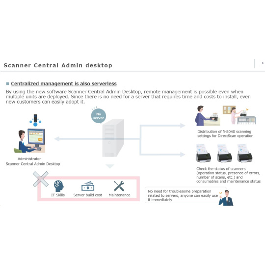 | Softvér | PaperStream Capture PaperStream ClickScan Voľba Vyhľadateľného PDF v rámci PaperStream ClickScan Operačný panel softvéru Sprievodca odstraňovaním chýb Agent správy Scannera Central Nástroj na nastavenie siete pre fi-Series Online aktualizácia fi Series ABBYY FineReader for ScanSnap (k dispozícii na stiahnutie) | |
