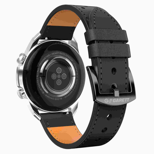 - Sada obsahuje: inteligentné hodinky Garett, silikónový remienok, nabíjací kábel USB (bez zástrčky do zásuvky), príručku QSG