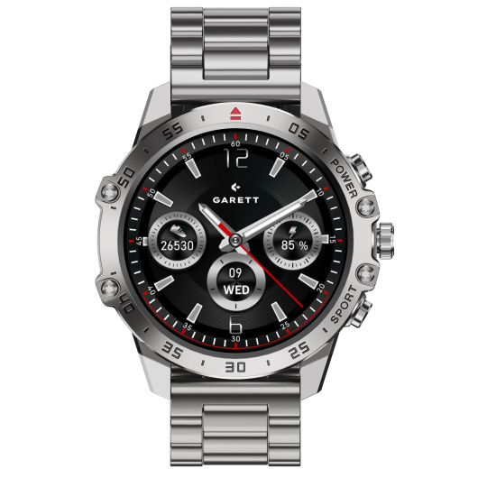 - Súprava obsahuje: GARETT smartwatch, prídavný silikónový remienok, nabíjací kábel, QSG návod