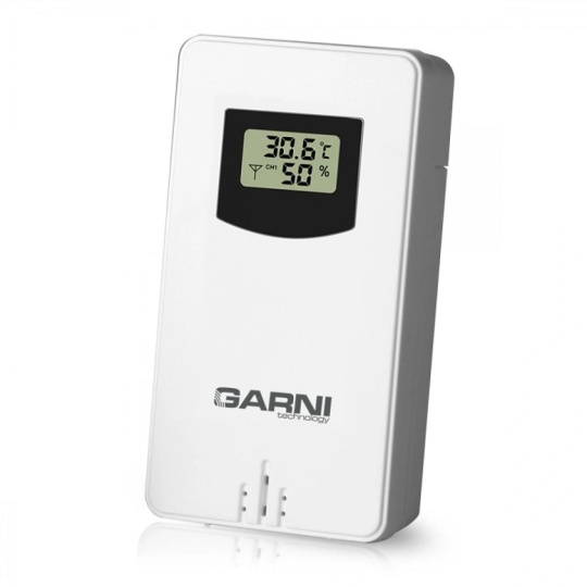 Bezdrôtové čidlo na meranie teploty a relatívnej vlhkosti, určené pre meteorologické stanice GARNI 439 Line, GARNI 545 Line vlhkosti odolné, krytie IPX4 (odolné voči kvapkajúcej vode) displej o rozmeroch 19 x 11 mm veľkosť číslic na displeji: teplota a relatívna vlhkosť 4 mm meranie teploty a relatívnej vlhkosti 3 kanály maximálny RF výkon 10 dBm (10 mW) možnosť postavenia a zavešenia farba biela