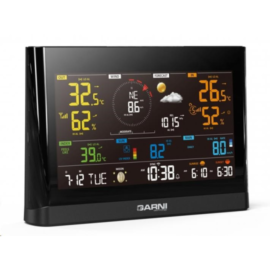 Wi-Fi meteorologická stanica model GARNI 1025 Arcus 2GEN s integrovaným bezdrôtovým čidlom 7-v-1, ktorá je vybavená mnohými funkciami zhromažďuje presné a podrobné údaje o počasí. Integrované bezdrôtové čidlo pracuje na frekvencii 868 MHz a meria vonkajšiu teplotu a relatívnu vlhkosť, rýchlosť a smer vetru, dažďové zrážky, barometrický tlak, UV index a intenzitu slnečného žiarenia. Výrobok používa vysoko presné švajčiarske čidlá SENSIRION a umožňuje kalibráciu niektorých meteorologických veličín.