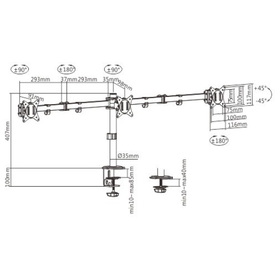 - Stolový držiak monitora s trojitým ramienkom monitoru
