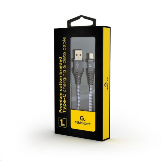 GEMBIRD CABLEXPERT USB 2.0 Kábel AM na typ C (AM/CM), 1 m, opletený, sivý a biely, blister, PREMIUM KVALITA